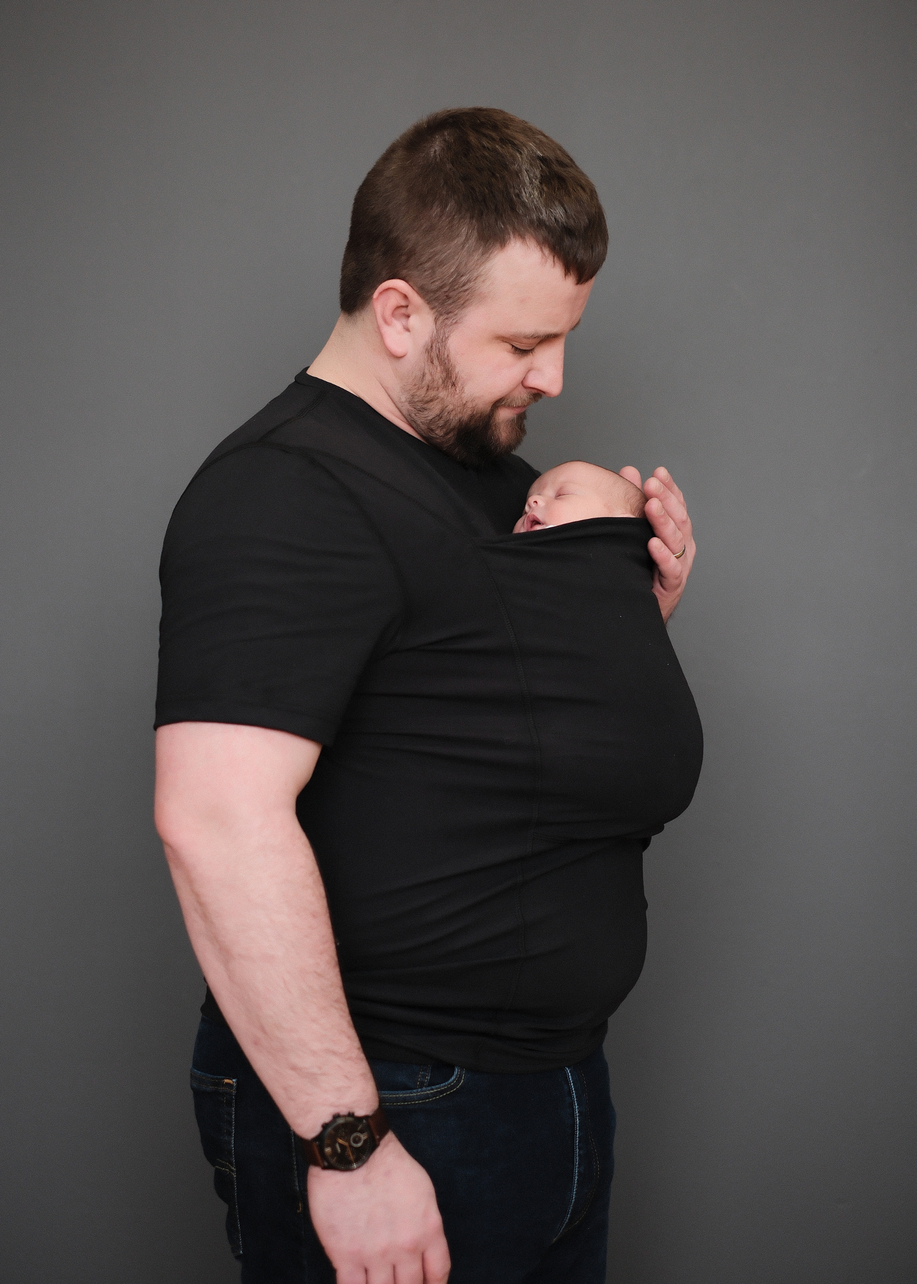Made for dads who want to keep babywearing simple. Bonding made easy, no complicated wrapping or buckling here. Just put on your shirt, tuck your new babe into the front pouch, and feel both freedom and closeness. No more cramped arms, tired back, or worry. Keep ‘doing you’ and give your wifey that much needed break. Made with premium breathable fabric, tailored to fit close and keep your babe safe. The supportive infant pouch extender grows with baby and can be secured with sewn-in magnets when not in use. Can be worn as a shirt once baby grows out of it.